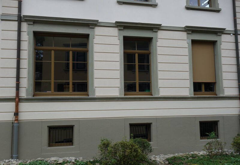 Das ursprünglich als Wohnhaus erbaute klassizistische Gebäude aus dem Jahre 1893 wurde mehrfach erweitert und umgebaut. Seit den 1930er Jahren ist es im Besitz des Kantons Thurgau und beherbergt das Kantonale Laboratorium. Durch die verschiedenen Erweiterungen und Renovationen ging der klassizistische Charakter des Hauses weitgehend verloren. Die Fassade wurde der ursprünglichen Idee entsprechend neu gegliedert. Die Farbgestaltung stärkt die Sandstein-Elemente, welche einst die Erscheinung prägten. Die obere Fassadenhälfte wurde in einem pludrigen Weiss und die Bossen in einem hell-rötlichen Ocker als Schlämme auf einen feinen Kalkputz gestrichen. Die Wahl von Farben und Putzstruktur gibt dem Gebäude nicht nur ein neues elegantes Gesicht, sondern bewirkt auch, dass es sich als eigenständiger Bau in seinem Kontext behauptet.