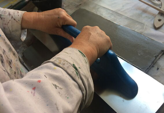 Oberfläche Die Gestaltungsmöglichkeiten einer Oberfläche sind unendlich vielfältig. Der Farbauftrag ist dabei nur einer von vielen Faktoren. Eine Oberfläche kann geglättet, gefilzt, gerieben, gerillt, fein oder grob gekörnt, vertikal oder horizontal strukturiert werden. Verschiedenste Werkzeuge können ihre Spuren hinterlassen. Wir können eine Oberfläche textil oder steinig wirken lassen, können ihr durch Lasuren Tiefe oder durch Effektpigmente einen Hauch von Glamour verleihen. In der Werkstatt tüfteln wir an der Oberfläche.